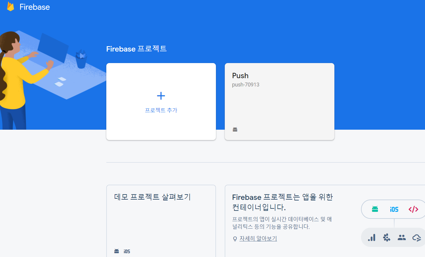 일단 FCM에 들어가게 되면 프로젝트를 추가할 수 있게 나옵니다.