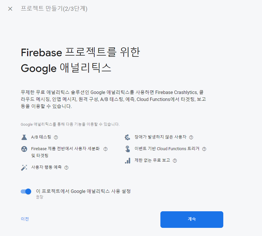이제 이렇게 되면 FCM 프로젝트가 생성이 되었어요!