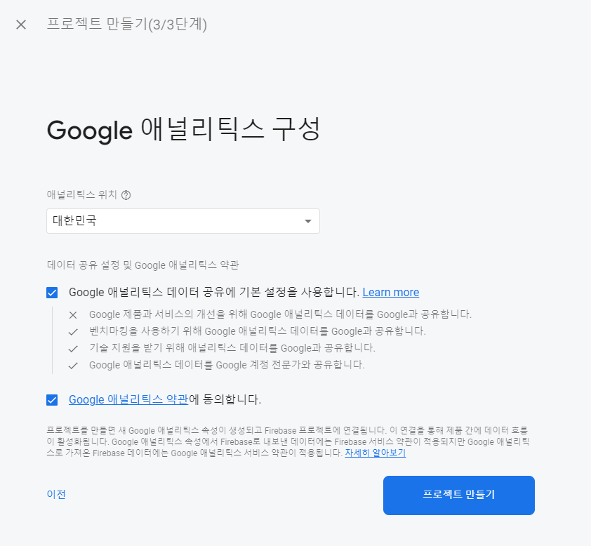 대한민국 선택 후 프로젝트 만들기