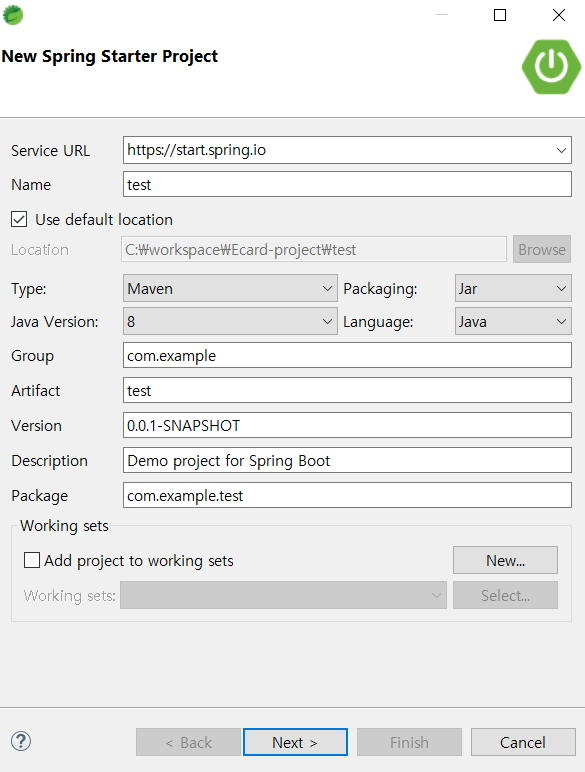 두둥! 여기까지 Spring Boot 프로젝트 생성하기 끄읏!