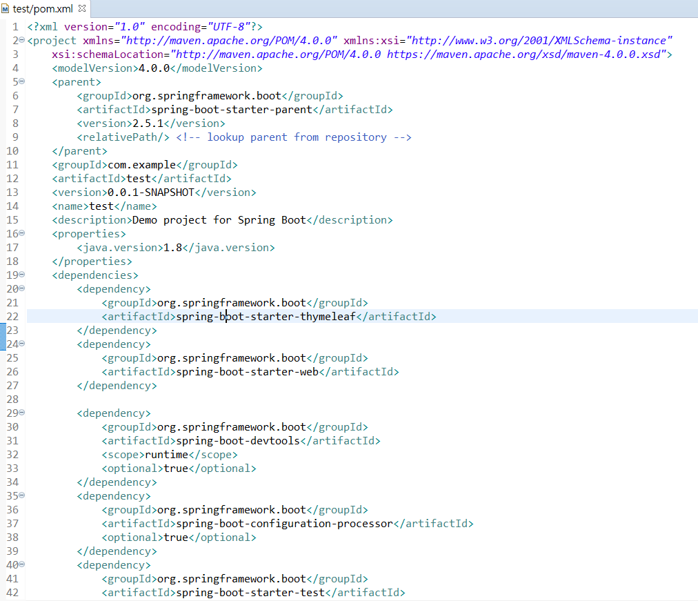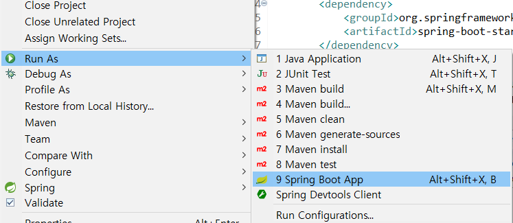 pom.xml 들어가보면 우리가 프로젝트 생성할 때 넣어주었던 친구들이 들어가있어요!