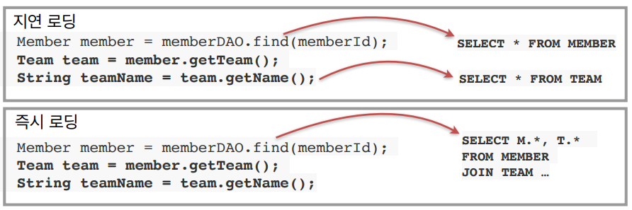 2) 즉시 로딩 : JOIN SQL로 한번에 연관된 객체까지 미리 조회