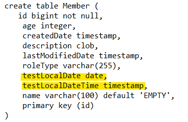 ** 지금은 사실 @Temporal이 필요 없다.. 자바8이 되면서 하이버네이트에서 LocalDate, LocalDateTime을 지원해주기 시작하였다.