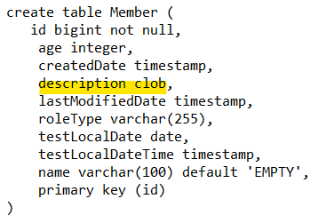 매핑하는 필드 타입이 문자면 CLOB / 나머지는 BLOB으로 매핑한다.